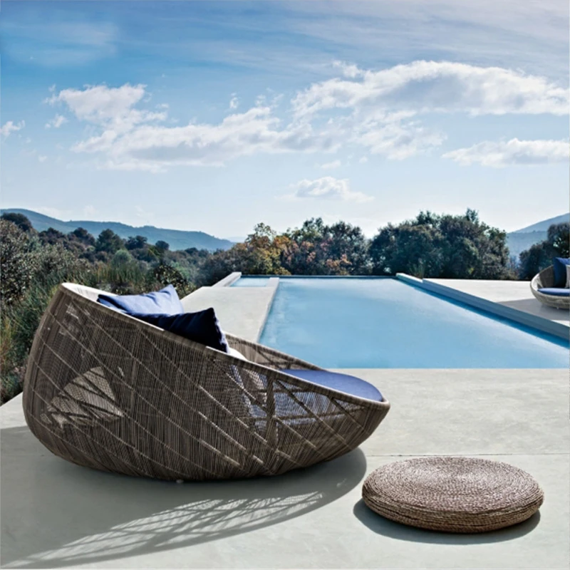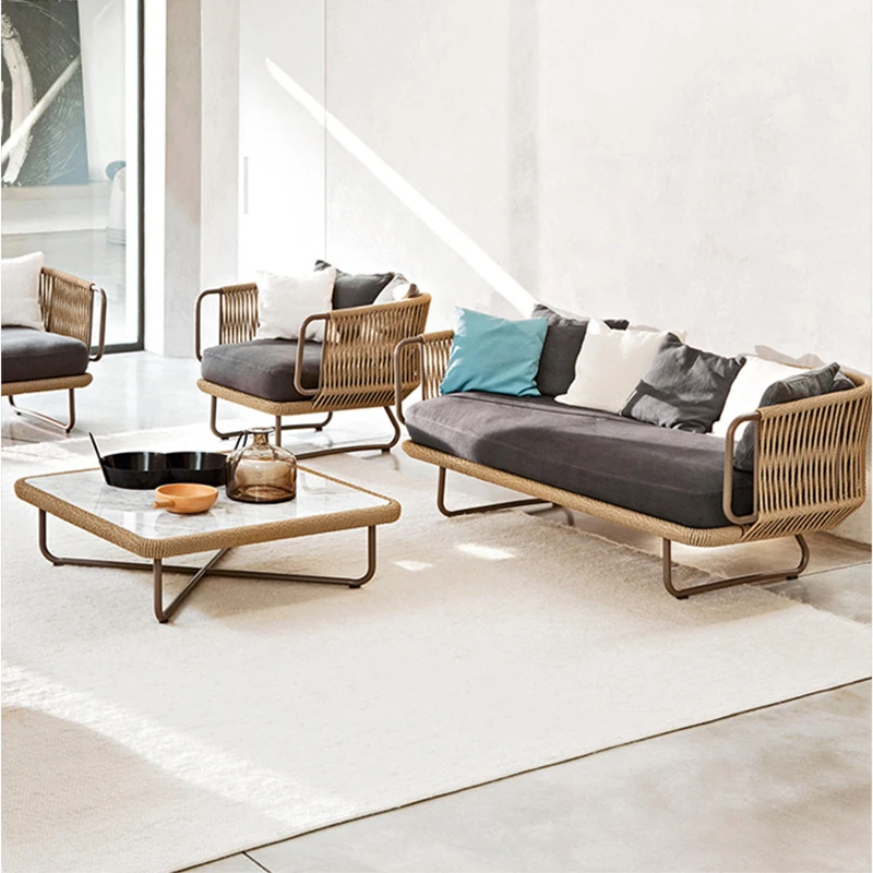 Nordic Outdoor Wicker Sofa - Designer Patio Garden Balcony Lounge with Sun Protection and Waterproof Iron Frame for Stylish Outdoor Spaces