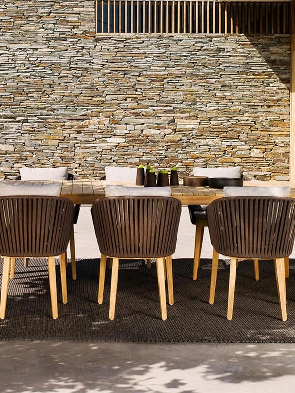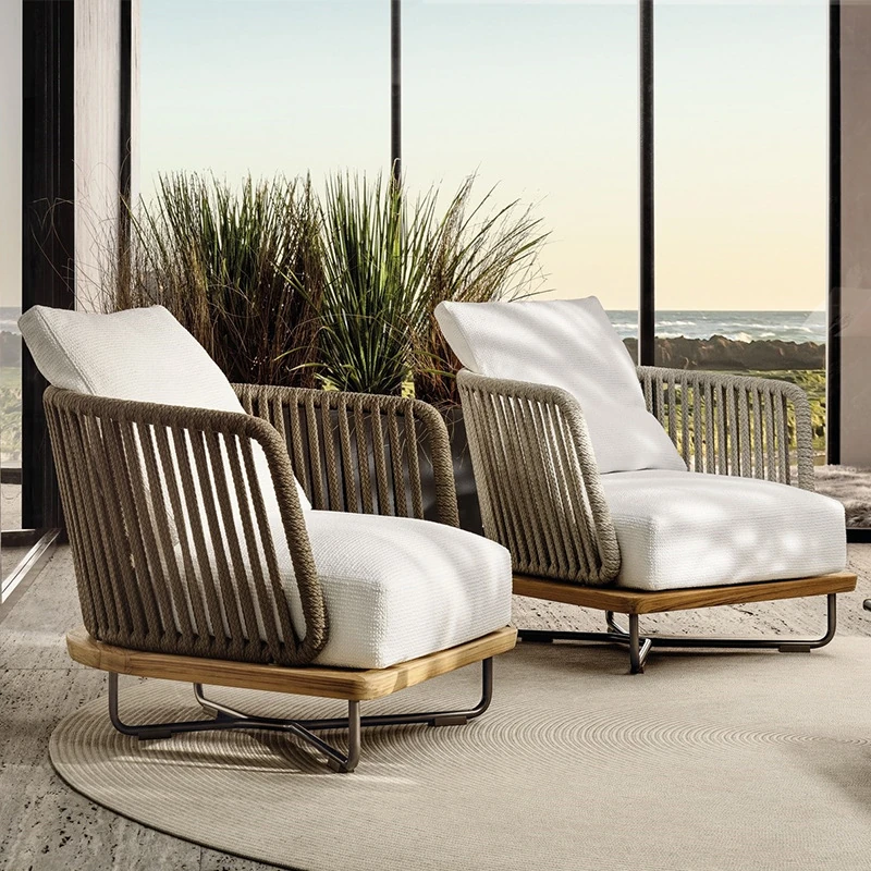 Nordic Outdoor Designer Villa Patio Rattan Sofa Chair for Garden - Stylish Teak and Bamboo Lounge Furniture for Cozy Open-Air Spaces