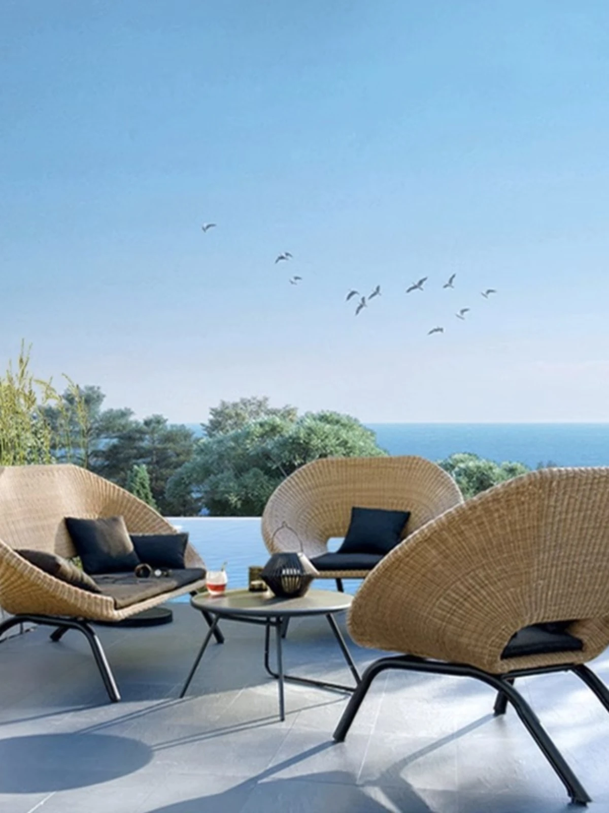 New Nordic Outdoor Rattan Patio Furniture Set – Stylish Balcony & Garden Relaxation Table and Chairs, Perfect for Your Home. Enjoy Comfort with Our Rattan/Bamboo Sofa!