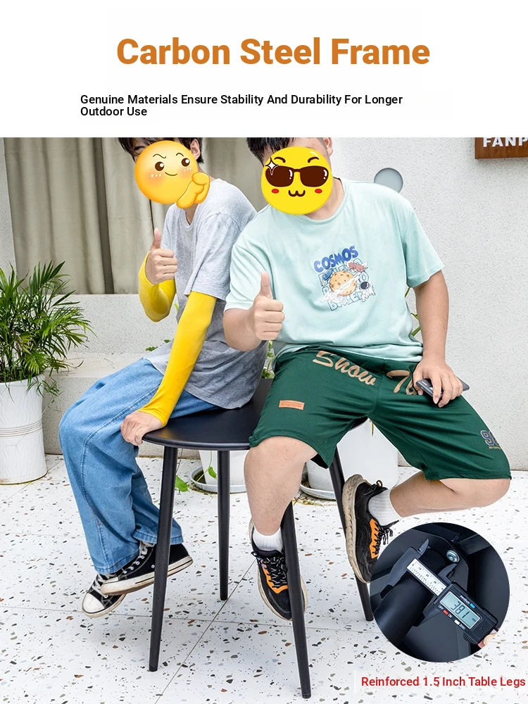 Outdoor Carbon Steel Table and Chair Set - Waterproof and UV Resistant Garden Patio Coffee Table for Living Room and Home Use, Round Leisure Dining Furniture