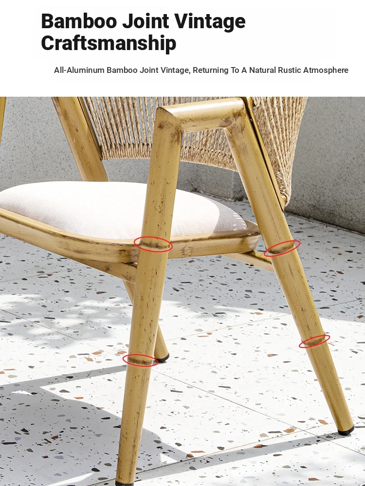 Outdoor Aluminum Alloy Waterproof and Sun-Proof Patio Furniture Set - Stylish Rattan Chairs and Bamboo-Look Table for Home, Villa, and Leisure Gardens