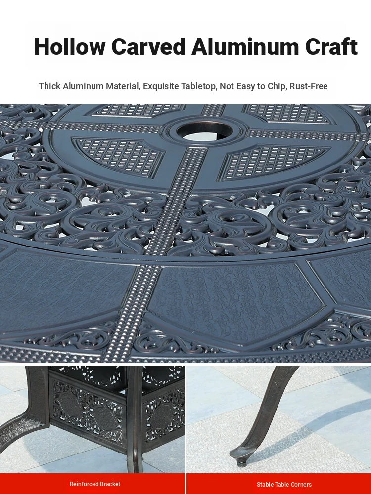 Outdoor Cast Aluminum Patio Furniture Set - Waterproof Iron Art Carved Table and Chair Combo for Garden, Villa, and Balcony Relaxation