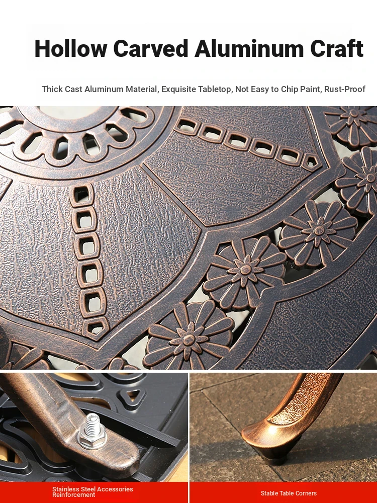 Outdoor Cast Aluminum Patio Furniture Set - Elegant Iron Garden Table and Chair Combination for Villas, Balconies, and Yards - Perfect for Relaxing in Your Garden or Courtyard