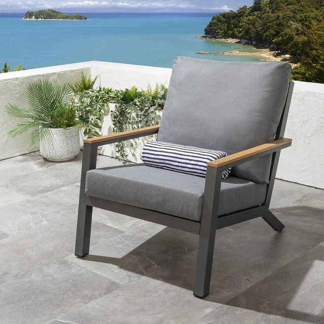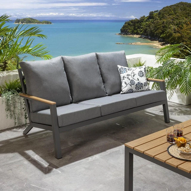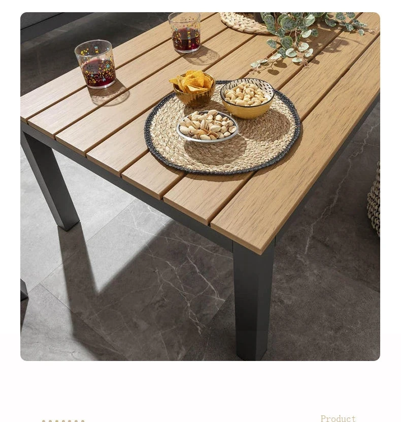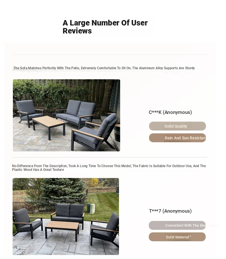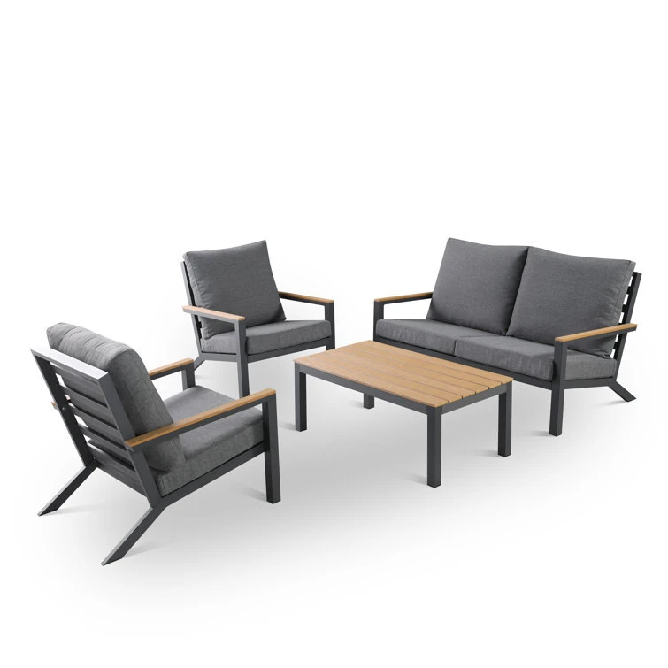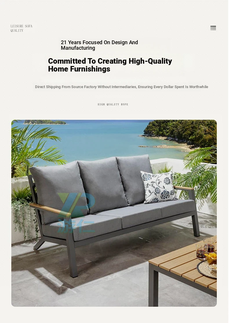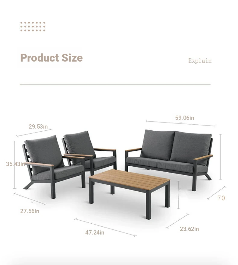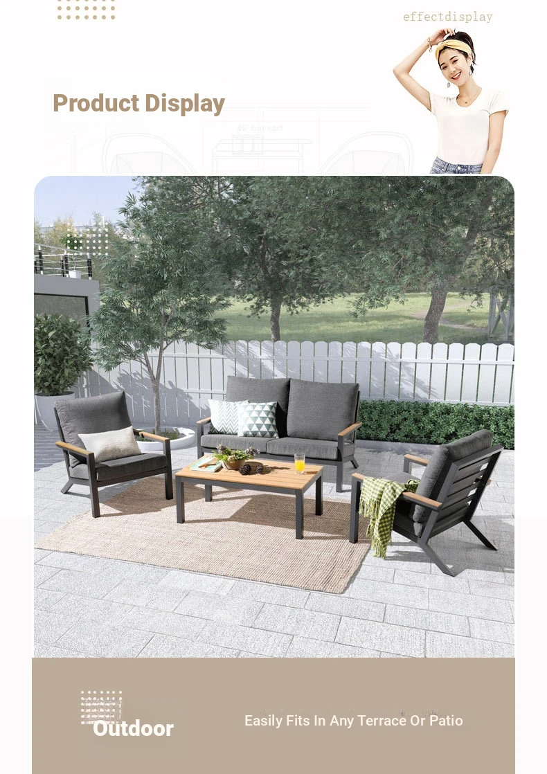Outdoor Aluminum Sand Color Sofa Set for Villa Gardens – Weatherproof & UV Resistant Chairs with Durable Plastic Wood Coffee Table, Ideal for Patios and Sales Lounges